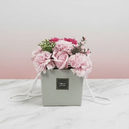 Bouquets are artistically arranged and beautifully presented in a gift bag. Each bouquet contains 7 delicately scented bath roses and 3 bath carnations.