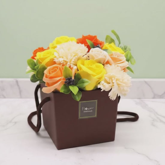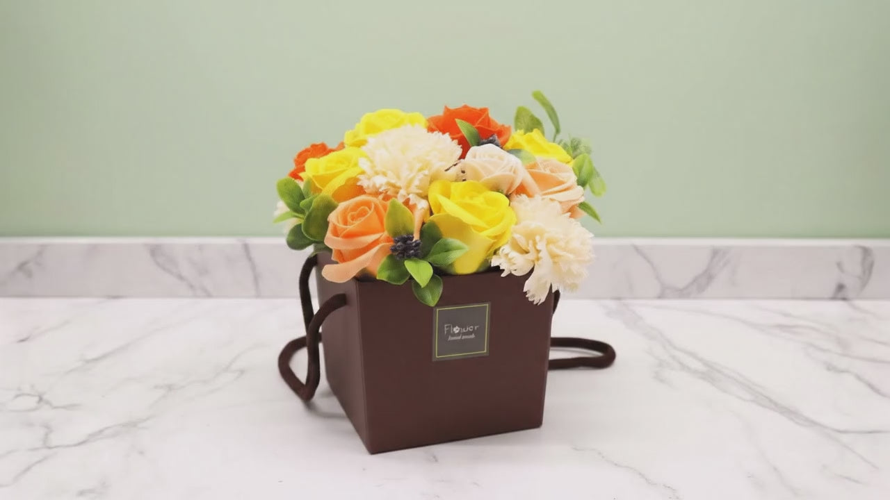 Why not give something a little different with this beautifully packed bouquet of Soap Flowers. A small gift packed with love.